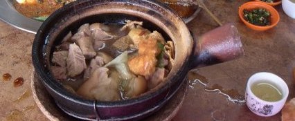 A氏のお誘いでバクテーを食べに行きました。行き先はポートクラン(KLの西にあるマラッカ海峡に面した港町)で集合は朝8時です。 バクテーの正しい食べ時は朝食です。元々は華人の漁師料理だそうです。朝、出漁前に食べ元気を付け出かけるそうです。 地元をよく知るA氏の部下の華人チャンさんの案内でした。注文はチャンさんにお任せしました。 |