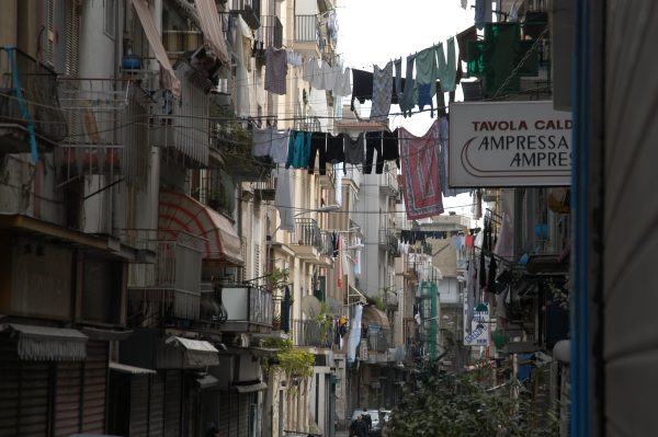 | 再び電車に乗りポンペイへ行きました。遺跡には正月休みで入れませんでした。遺跡見物ははまたの機会にして、もっぱら気楽にポンペイの町を歩き周りました。風がさわやかで気温も正月なのに暖かでした。地中海の空の青さは今でも目に焼き付いています。 |