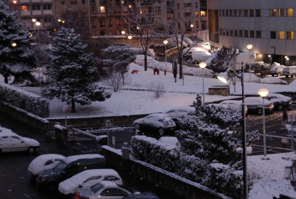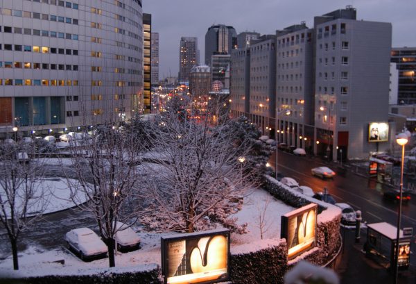 前日の土砂降りは、打って変わって青空が広がりました。内陸ですからもっと寒いと思っていましたが、余り寒さを感じません。 この町は活気があって清潔です。建築現場もイタリアなどと比べると優等生と劣等生の差くらい違います。きちんと整頓されていて整然としています。イタリアのミラノにもありましたが、特設の屋外アイススケートリンクがありました。子供サポート用のペンギンは良いアイデアだと思いました。 次の目的地はパリです。まず電車でフランスのストラスブールへ出て、ここでパリ行きの電車に乗り換えました。どちらの列車もコンパートメント二人占め、ゆったりとご機嫌でした。パリへ近づくにつれ外は雪で真っ白でした。まるで吹雪の中を突っ走っているようでした。 |