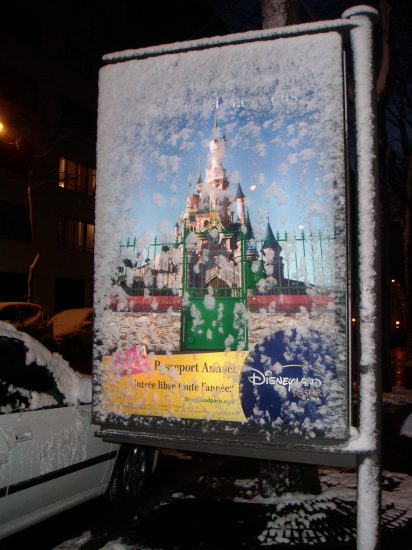 次の日、雪の中モンパルナス駅からルマンへ向かったのですが雪で電車が途中で止まり、またバスに乗り換えです。今度は経験済みですから”ラッキー”余裕綽々です。最高の旅になりました。バスで駅を一つずつ止まって行きます。駅周辺の家々が雪に飾られてとてもきれいでした。帰りには電車が開通していて、ウェルサイユ宮殿駅で降りて雪の宮殿を見ることが出来ました。 |