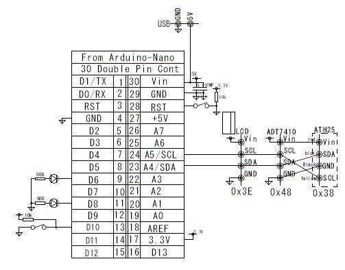 3 I2C 3回路 ---LCD(AQM1602XA-GWB-11C) ATH25(温湿度) ADT7410(温度のみ)