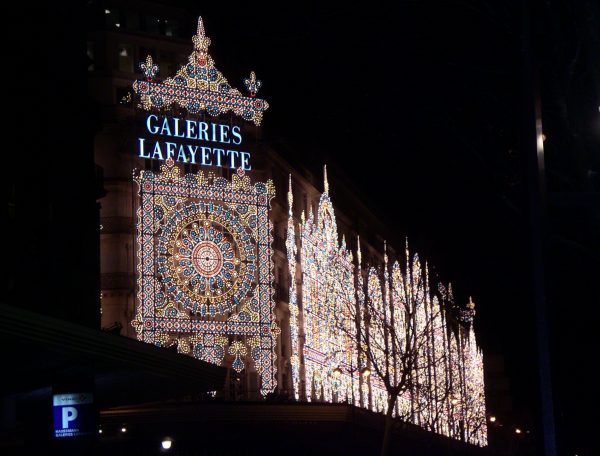 | 夜は頑張ってシャンゼリゼ通りのヴェスビオというレストラン(昨年もここへ来ました。)でサーモンステーキをとってワインワインで乾杯しました。帰りにオペラ座まで歩いてラファイエットデパートの素晴らしい照明を見て、地下鉄で帰りました。地下鉄駅からケネディホテルまで歩いて1Km程あります。雪の中を歩きながら、雪のパリをみた興奮がずっと続いていました。 |